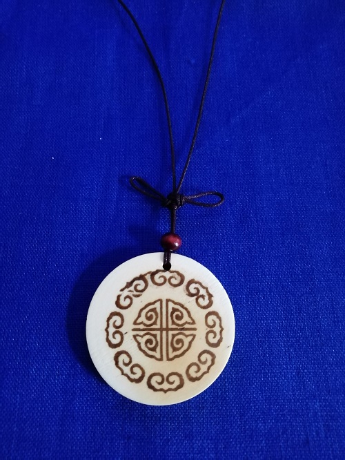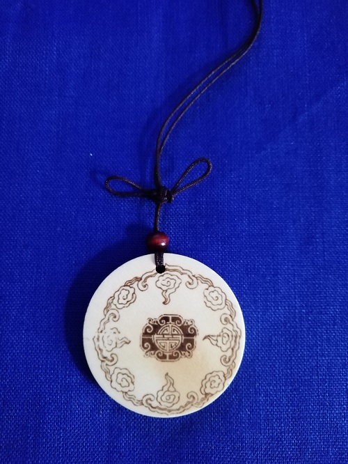 Wooden necklaces and ear pendants curved with beautiful patterns from ancient China.